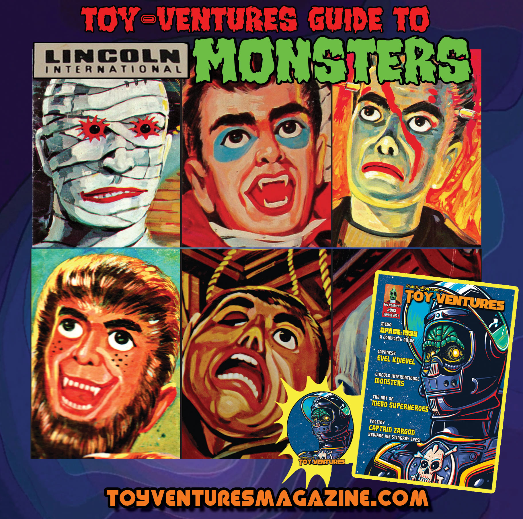 Issue 3 of Toy-Ventures Magazine features the most comprehensive guide to the Lincoln Monsters every created with a detailed history of the company and of course, all the many iterations of the characters themselves. Physical copies are still available in our shop at multiple retailers and e-tailers across the world. Our new book Rack Toys: Cheap, Crazed Playthings has been published by the Nacelle Company and features the Lincoln Monsters and many more fun low cost toys.